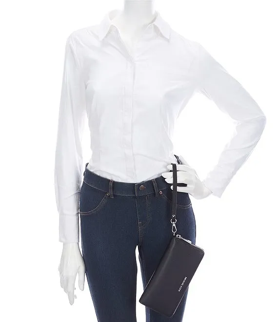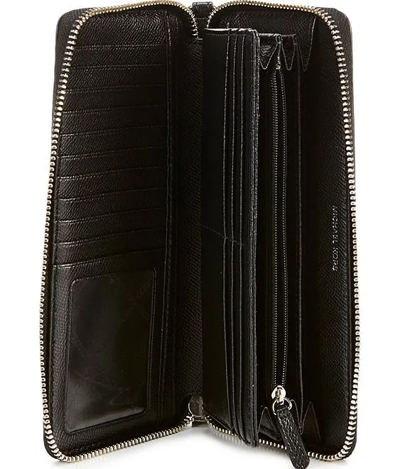 From Michael Kors, the Silver-Tone Jet Set Continental Multifunction Phone Wallet features: