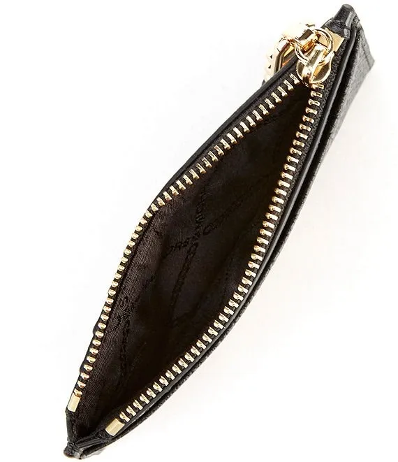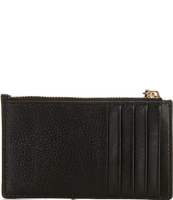 Polished and pragmatic, this slim style is an elevated alternative to traditional card cases. Accented with our Empire hardware for a hint of glamour, it’s crafted from pebbled leather and features a pocketed exterior for your cards, while a zip-fastened interior compartment offers additional storage for coins and cash. Slip it into your favorite tote.