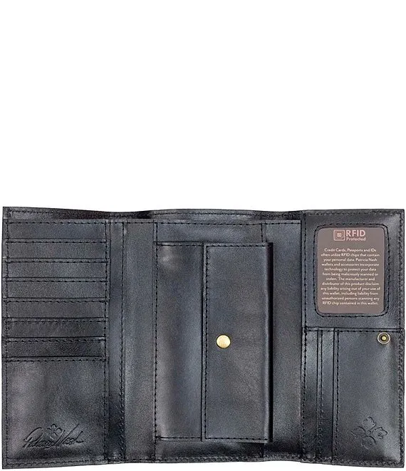• Interior: 1 clear ID window, 9 credit card slots, center snap change pocket, 4 bill slots