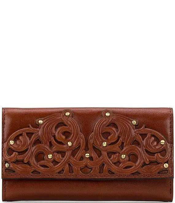 • Exterior: 1 rear slip pocket, deep embossed grape leaf logo, burned edge finish