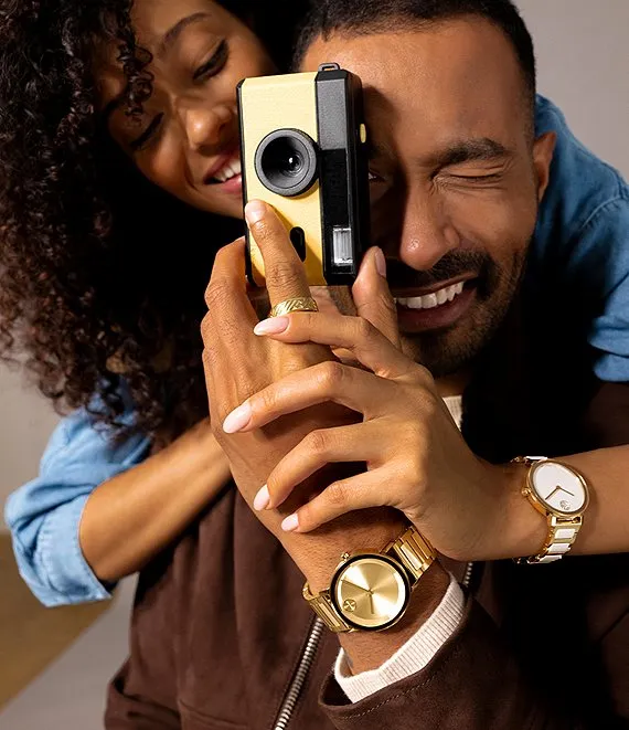 - 34mm iconic plated light gold-tone stainless steel and white ceramic bracelet