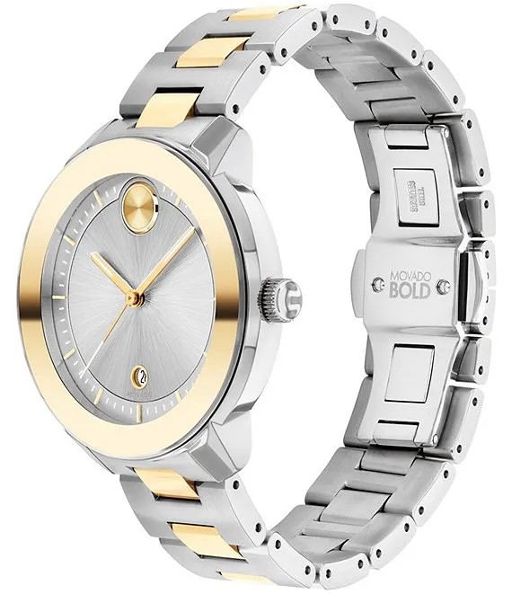 From Movado Bold, the Women's Two-Tone Verso Watch features: