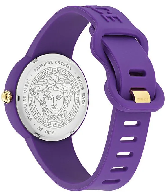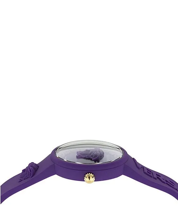 From Versace, the Medusa Pop Quartz Analog Silicone Strap Watch features: