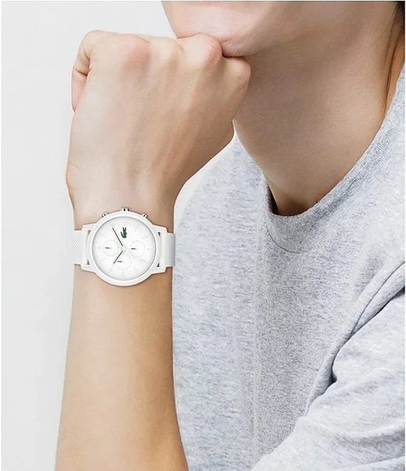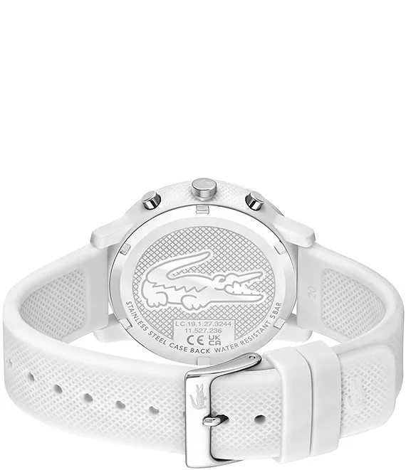 From Lacoste, the Men's L 12.12. Chrono White Silicone Strap Watch features: