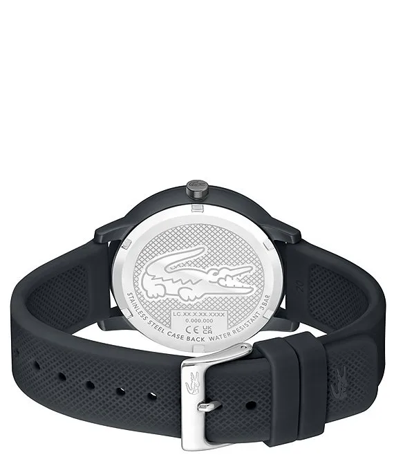 From Lacoste, the Men's 12.12 Quartz Analog Dark Grey Silicone Strap Watch features:
