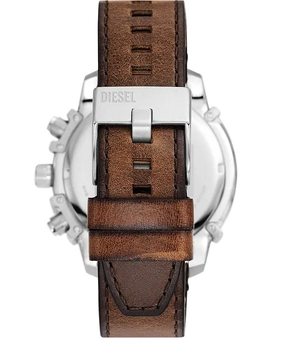 From Diesel, the Men's 48mm Griffed Chronograph Brown Leather Strap Watch features: