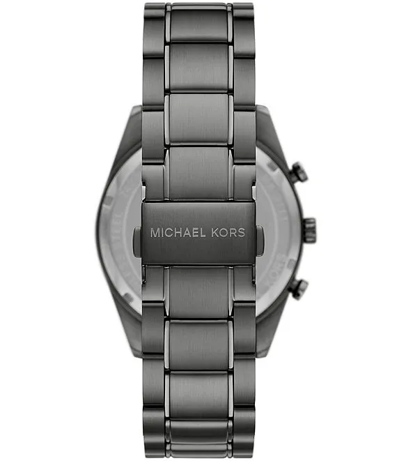 From Michael Kors, the Men's Accelerator Chronograph Gunmetal Stainless Steel Bracelet Watch features: