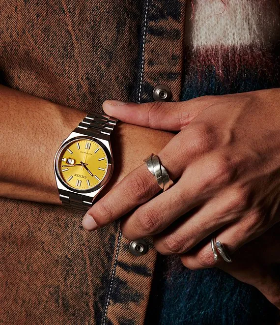 From Citizen, the Men's Automatic Stainless Steel Yellow Dial Watch features:
