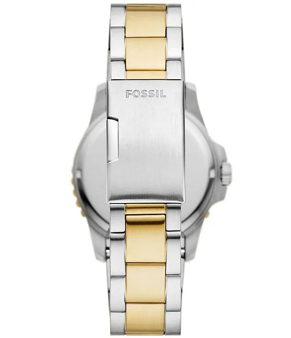 From Fossil, the Men's Blue Dive Three-Hand Date Two Tone Stainless Steel Bracelet Watch features: