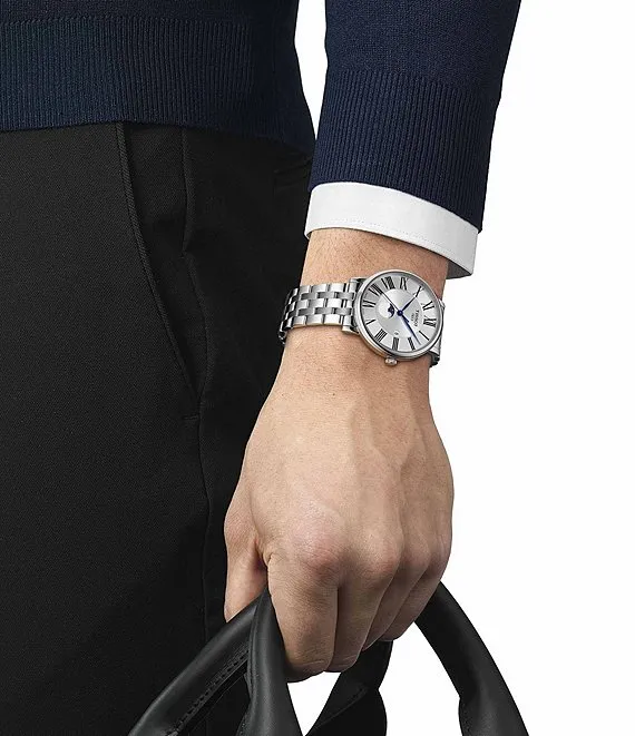 From Tissot, the Men's Carson Gent Premium Moonphase Quartz Chronograph Stainless Steel Bracelet Watch features: