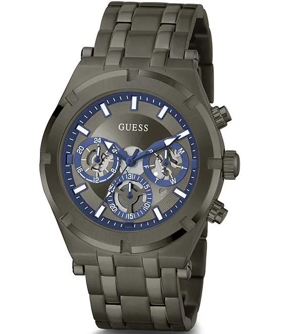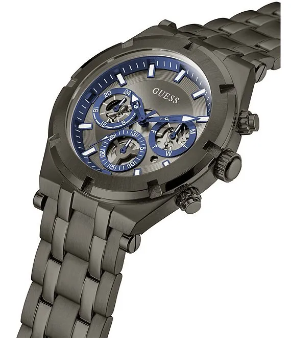 From Guess, the Men's Continental Multifunction Gunmetal Bracelet Watch features: