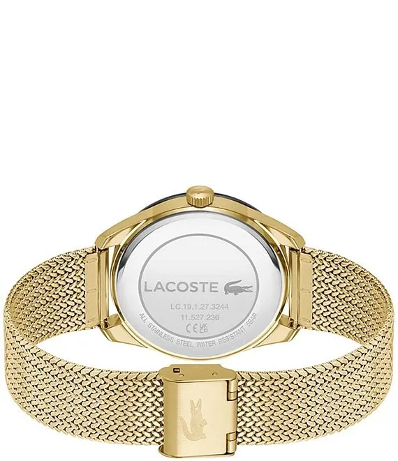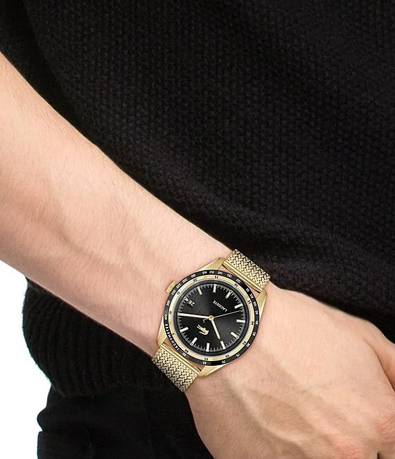 From Lacoste, the Men's Everett Gold Tone Stainless Steel Mesh Bracelet Watch features: