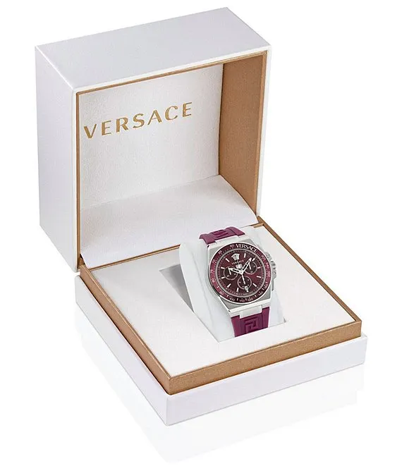 From Versace, the Men's Greca Extreme Chronograph Burgundy Silicone Strap Watch features: