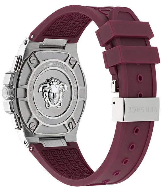 • Versace Men's Greca Extreme Chronograph Burgundy Silicone Strap Watch