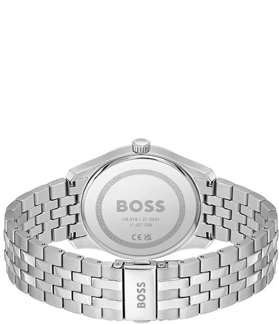 From Hugo Boss, the Men's Principle Quartz Analog Stainless Steel Bracelet Watch features::