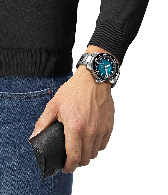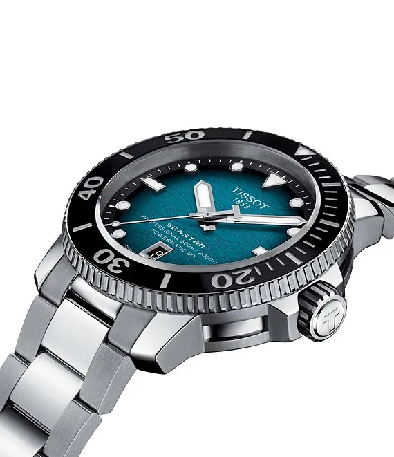 From Tissot, the Men's Seastar 2000 Professional Powermatic Stainless Steel Bracelet Watch features: