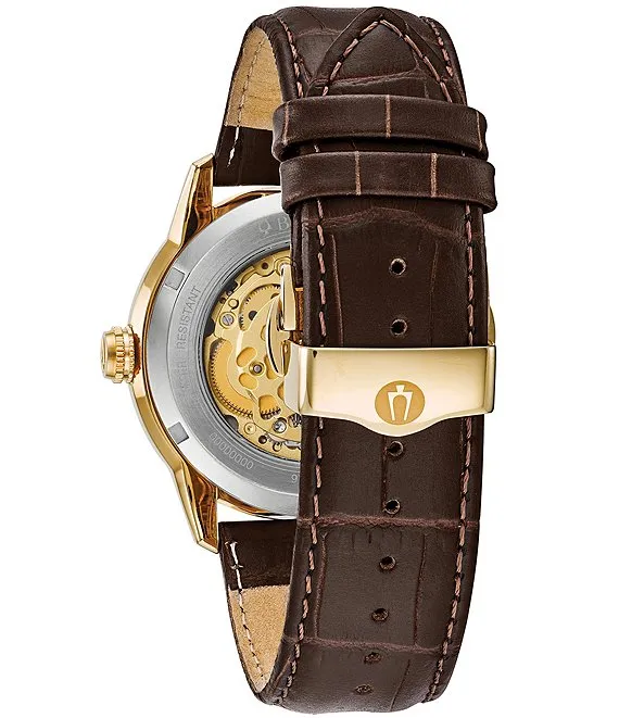 From Bulova, the Men's Sutton Automatic Brown Leather Strap Watch features: