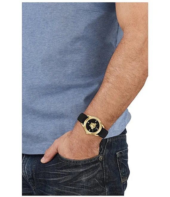 • Versace Men's V-Code Quartz Analog Black Leather Strap Watch