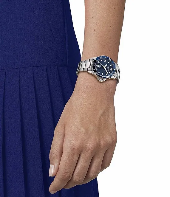 From Tissot, the Unisex Seastar 1000 Quartz Analog Stainless Steel Bracelet Watch features: