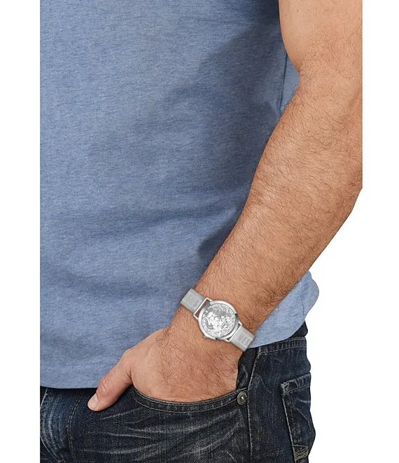 From Versus Versace, the Men's Barbes Domus Analog Stainless Steel Silver Mesh Bracelet Watch features: