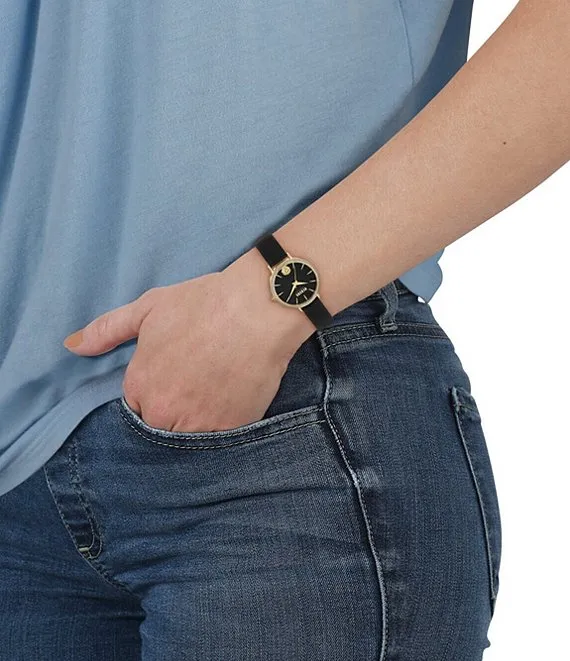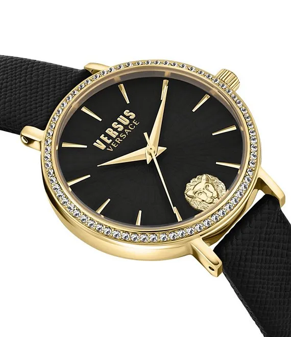From Versus Versace, the Women's Mar Vista Crystal Analog Black Leather Strap Watch features: