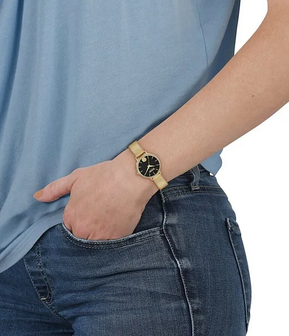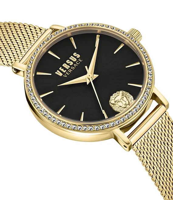 From Versus Versace, the Women's Mar Vista Crystal Analog Gold Stainless Steel Mesh Bracelet Watch features: