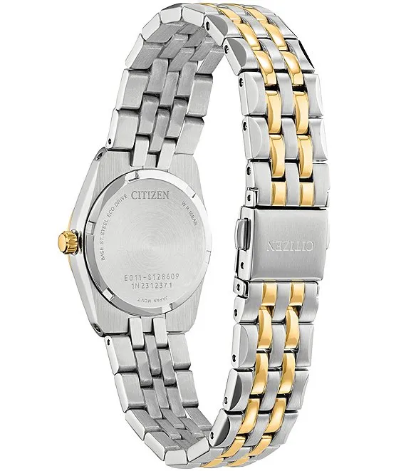 From Citizen, the Women's Corso Three Hand Two Tone Stainless Steel Bracelet Watch features: