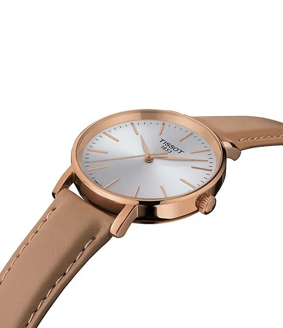 From Tissot, the Women's Everytime Quartz Analog Beige Leather Strap Watch features: