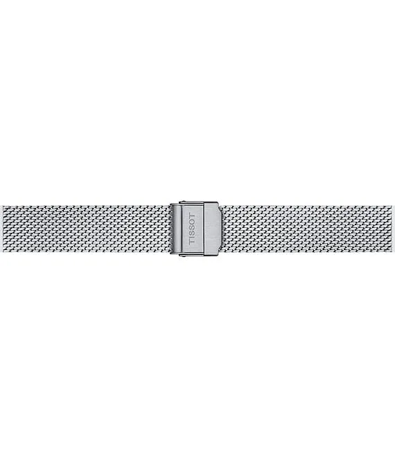 From Tissot, the Women's Everytime Quartz Analog Mesh Stainless Steel Bracelet Watch features: