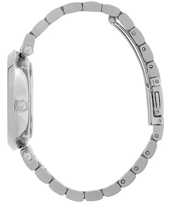From Olivia Burton, the Women's Floral T-Bar Quartz Analog Stainless Steel Bracelet Watch features: