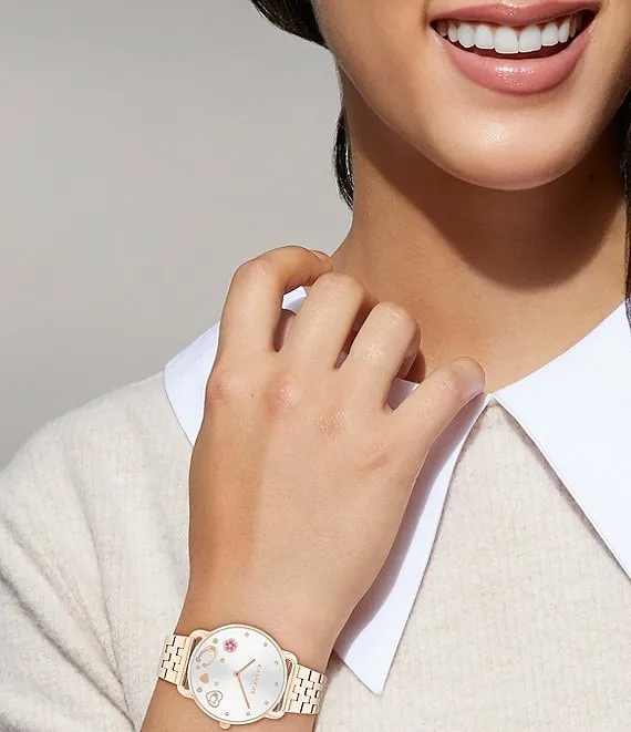 COACH Women's Heart and Crystal Embellished Elliot Quartz Analog Rose Gold Stainless Steel Bracelet Watch