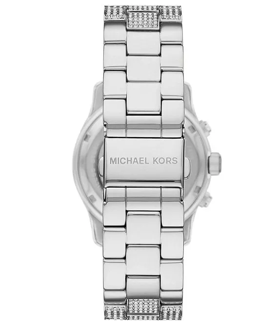 From Michael Kors, the Women's Runway Chronograph Pave Stainless Steel Bracelet Watch features: