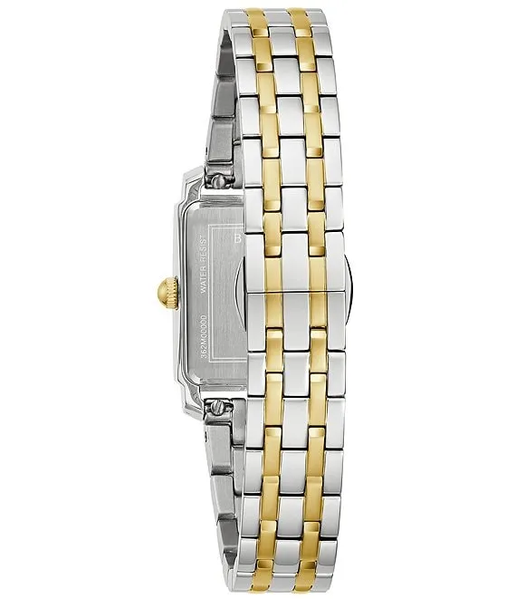 From Bulova, this Women's Sutton Quartz Analog Two Tone Stainless Steel Bracelet Watch features: