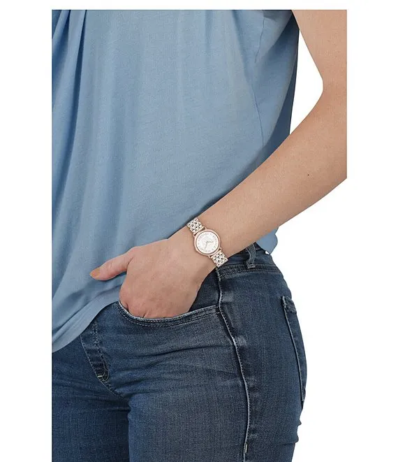 From Versace, the Women's V-Dollar Rose Gold Analog Two Tone Stainless Steel Bracelet Watch features: