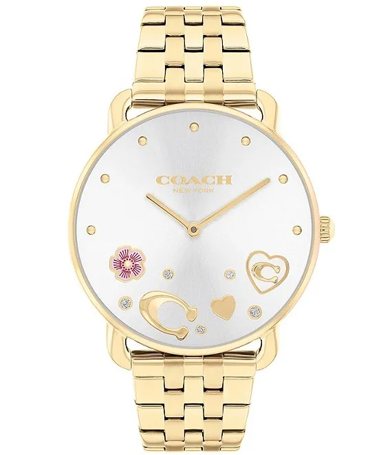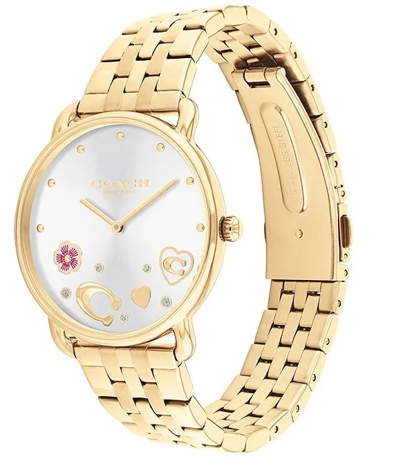 COACH Women's Heart and Crystal Embellished Elliot Quartz Analog Gold Tone Stainless Steel Bracelet Watch