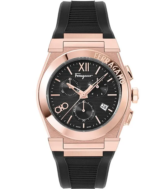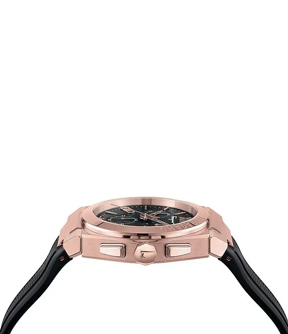 Men's Vega Rose Gold Quartz Chronograph Black Silicone Strap Watch
