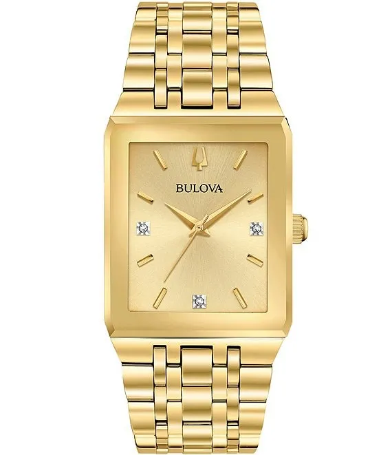 Bulova Modern Quadra Collection Men's Analog Gold Tone Stainless Steel Bracelet Watch