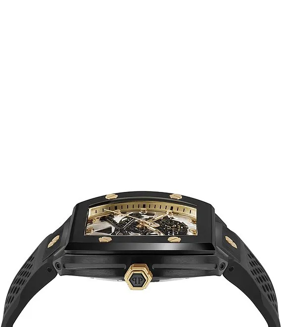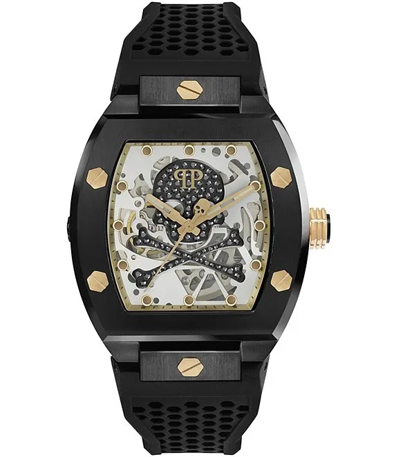Men's The Skeleton Automatic Grey Dial Black Silicone Strap Watch