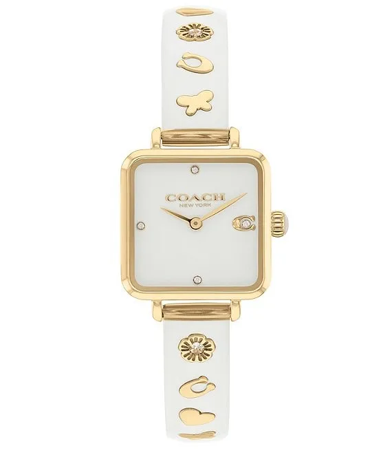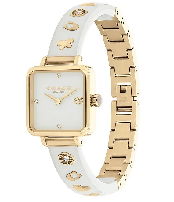 COACH Women's Cass Quartz Analog Chalk Resin with Crystal and Gold Tone Stainless Steel Square Bracelet Watch