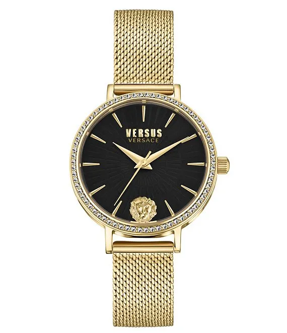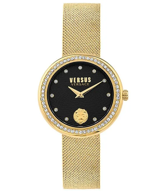 Versus By Versace Women's Lea Crystal Analog Gold Stainless Steel Mesh Bracelet Watch