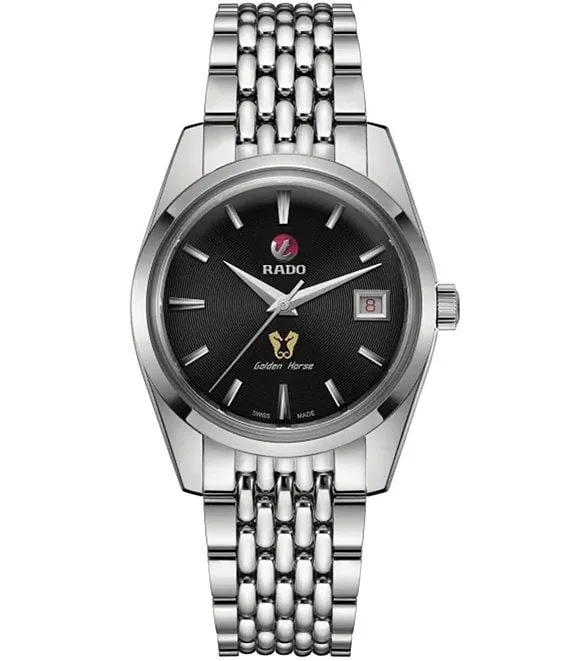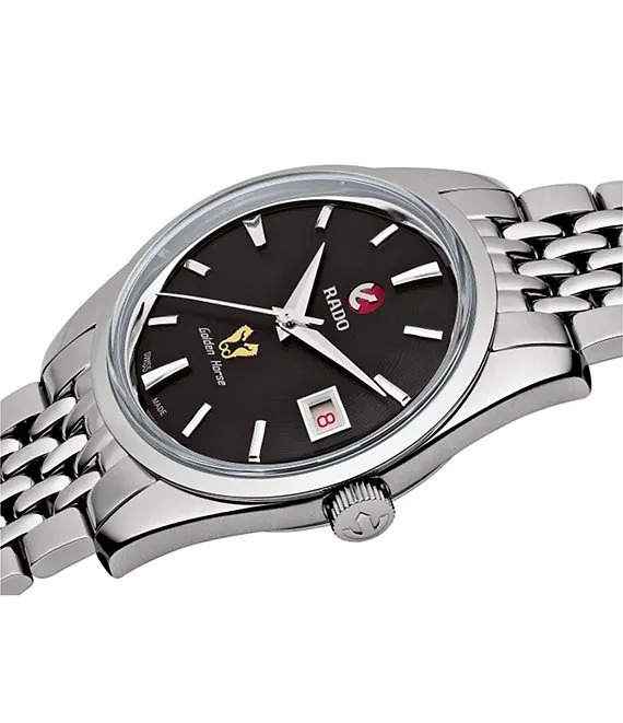 Men's Golden Horse Automatic Black Dial Silver Stainless Steel Bracelet Watch