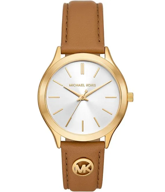 Women's Slim Runway Analog Three-Hand Luggage Leather Strap Watch