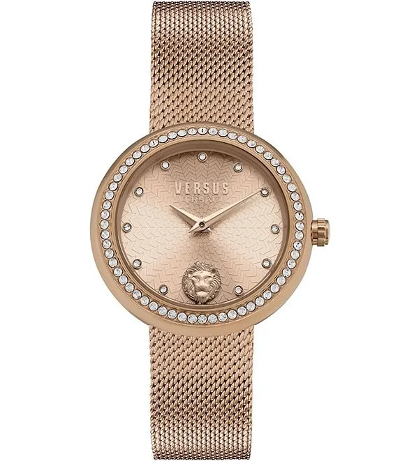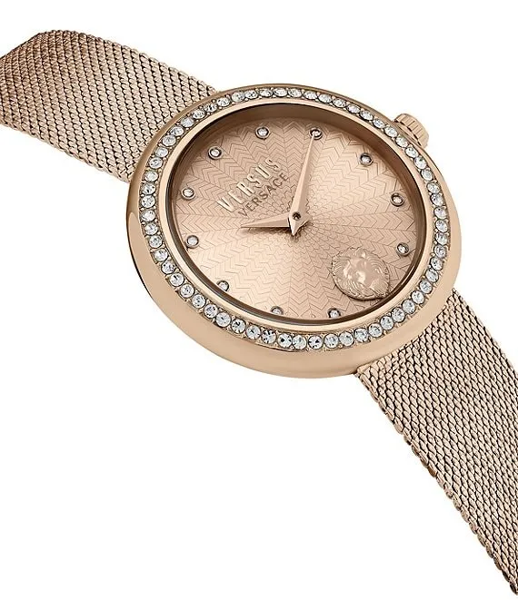Versus by Versace Women's Lea Crystal Analog Rose Gold Stainless Steel Mesh Bracelet Watch
