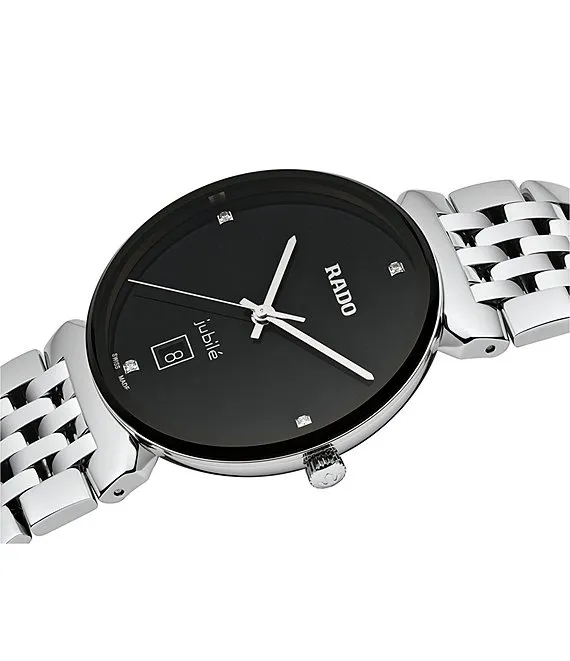 Unisex Florence Classic Diamonds Quartz Analog Black Dial Silver Stainless Steel Bracelet Watch