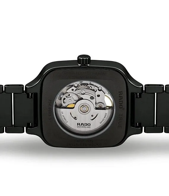 Unisex True Square Automatic Open Heart Black Ceramic Bracelet Watch