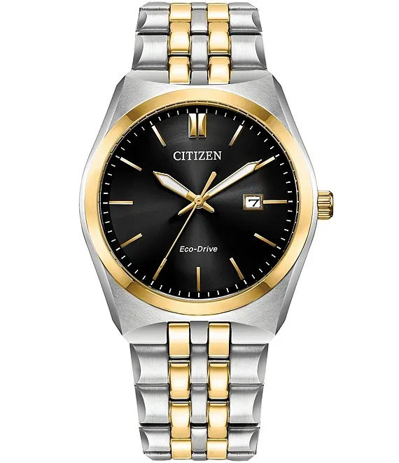 Men's Corso Three Hand Two Tone Stainless Steel Black Dial Bracelet Watch