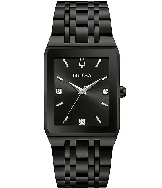 Bulova Men's Diamond Accent Black Stainless Steel Bracelet Watch