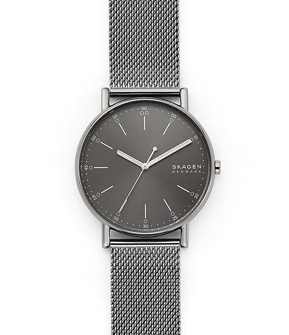 Signature Three-Hand Gray Steel-Mesh Watch