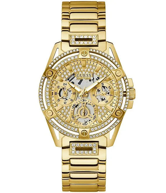 Guess Women's Queen Multifunction Gold Tone Glitz Stainless Steel Bracelet Watch
