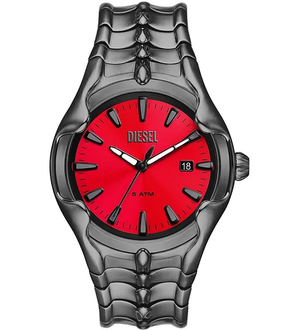 Men's Vert Three-Hand Date Red Dial Gunmetal Tone Stainless Steel Bracelet Watch
